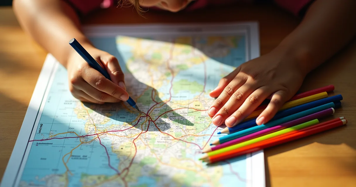 - Passo 4: Colocando em Prática com Mapas – Imprima um mapa simples do bairro ou de um parque. Peça pra ele marcar um ponto de partida e depois descrever o caminho até outro ponto. Use as referências: ‘saia da praça, siga reto pela rua principal até o semáforo, vire à direita’. Isso junta tudo que ele aprendeu.