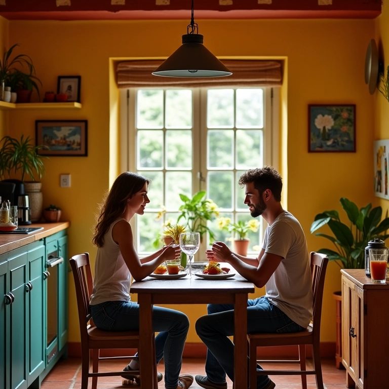 A iluminação é fundamental para criar um ambiente aconchegante e funcional. Use uma luminária pendente sobre a mesa para iluminar as refeições, um abajur no canto para criar um clima mais intimista e luzes indiretas para valorizar a decoração. Imagina só, um cantinho iluminado e charmoso para você aproveitar ao máximo!