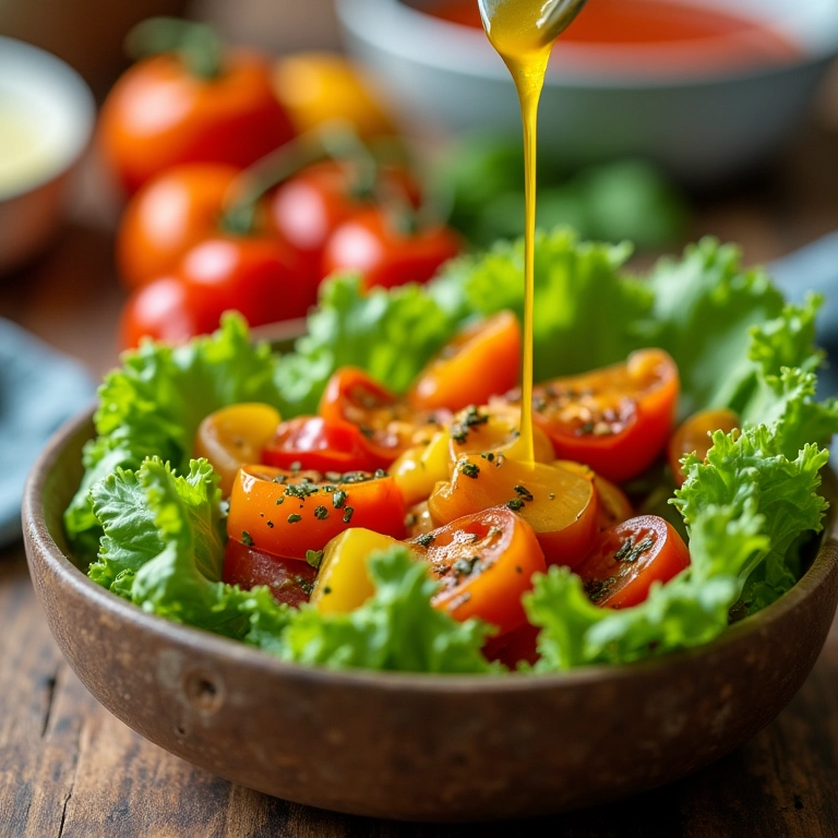 Incorpore frutas picadas como manga, abacaxi ou morango ao molho vinagrete. A combinação de sabores doces e ácidos é surpreendente e perfeita para saladas de verão.