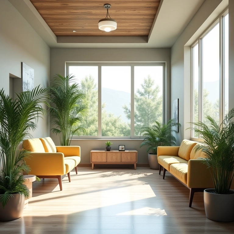 As plantas são minhas aliadas secretas em qualquer ambiente! Elas trazem vida, cor e frescor para o consultório, além de ajudarem a purificar o ar. Opte por espécies fáceis de cuidar, como suculentas, zamioculcas, lírios da paz e espada de São Jorge.
