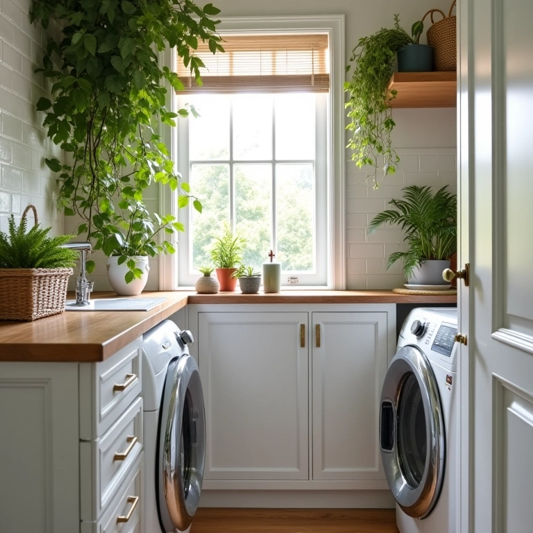Plantas trazem vida e frescor para qualquer ambiente, inclusive para a lavanderia! Escolha espécies que se adaptem bem a ambientes internos e com pouca luz, como samambaias, lírios da paz e suculentas. Além de decorarem o espaço, elas ajudam a purificar o ar e deixam o ambiente mais agradável.