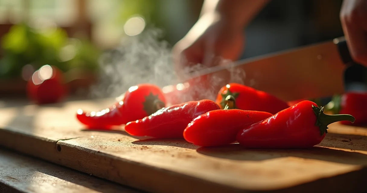 - Pique as pimentas em rodelas finas ou em cubos pequenos, dependendo da sua preferência e da receita.