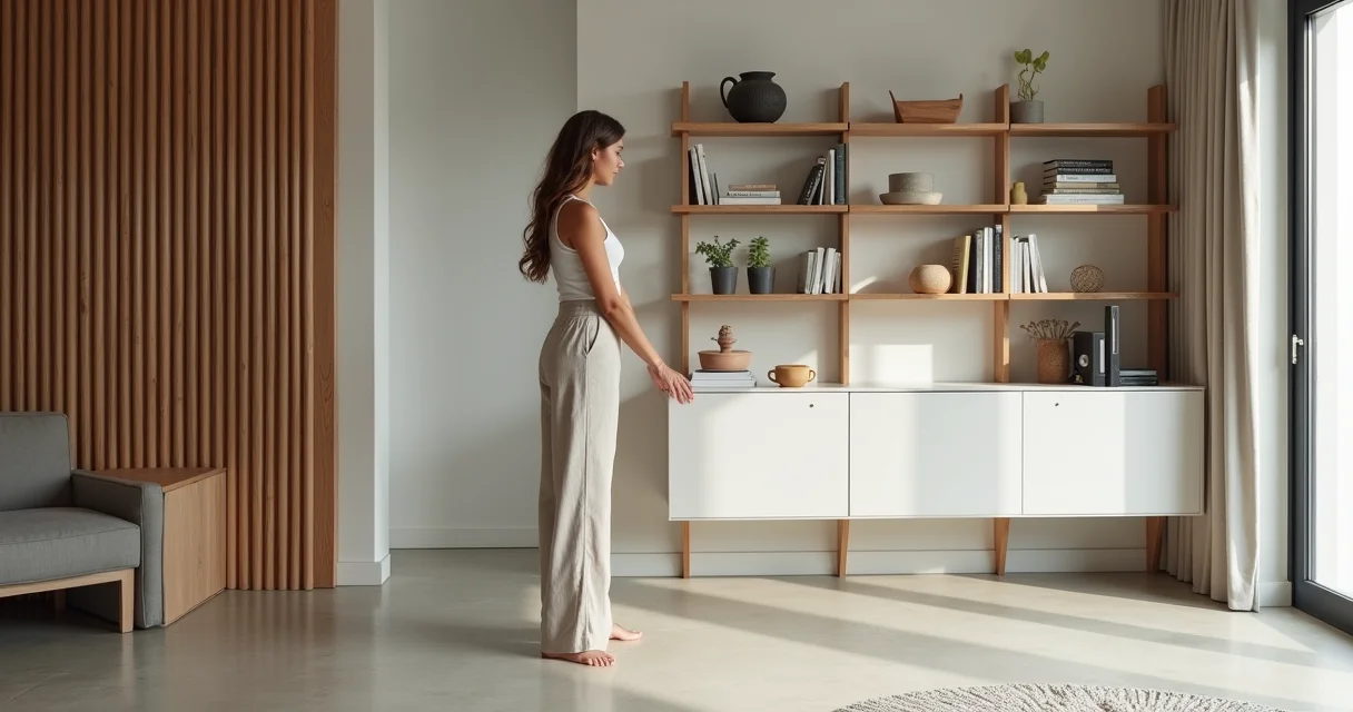 Aqui está o detalhe: Requer profundidade para prateleiras e organização constante para não parecer bagunçada. É solução multifuncional que une separação de ambientes com utilidade real.