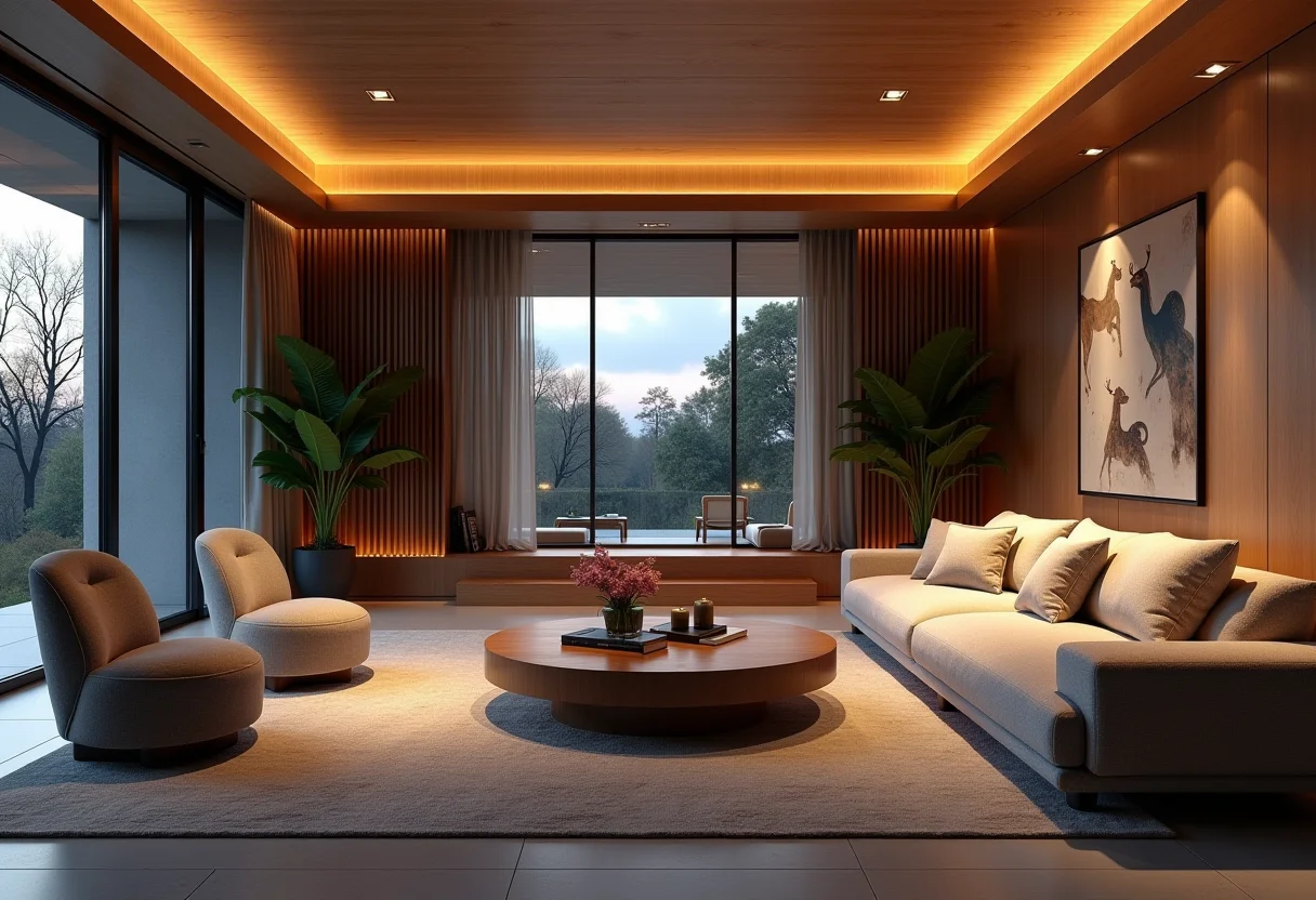 A iluminação indireta destaca os detalhes da decoração, como quadros, esculturas e plantas, criando um ambiente mais elegante e sofisticado. Ela também valoriza as texturas dos tecidos e dos revestimentos, dando mais vida e personalidade ao espaço.