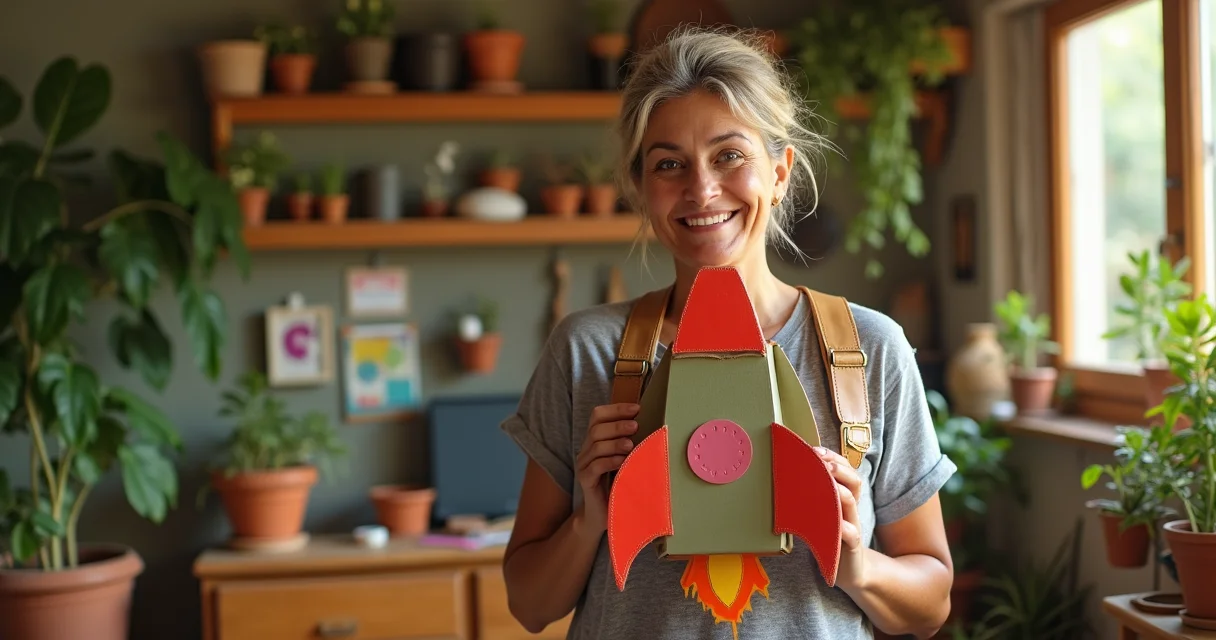 Mochila Foguete Espacial: Imagine seu filho chegando na escola com uma mochila que parece ter decolado direto para a lua! Usamos garrafas PET para os propulsores e papelão para a estrutura principal. Fitas prateadas dão o toque futurista.