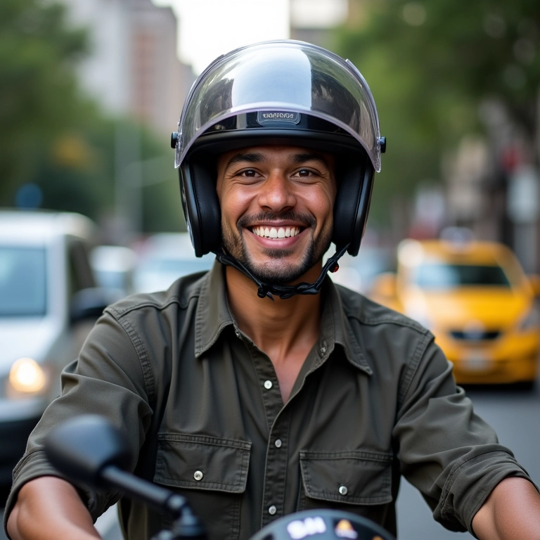 Um mototaxista satisfeito com os benefícios que a formalização como MEI proporciona.