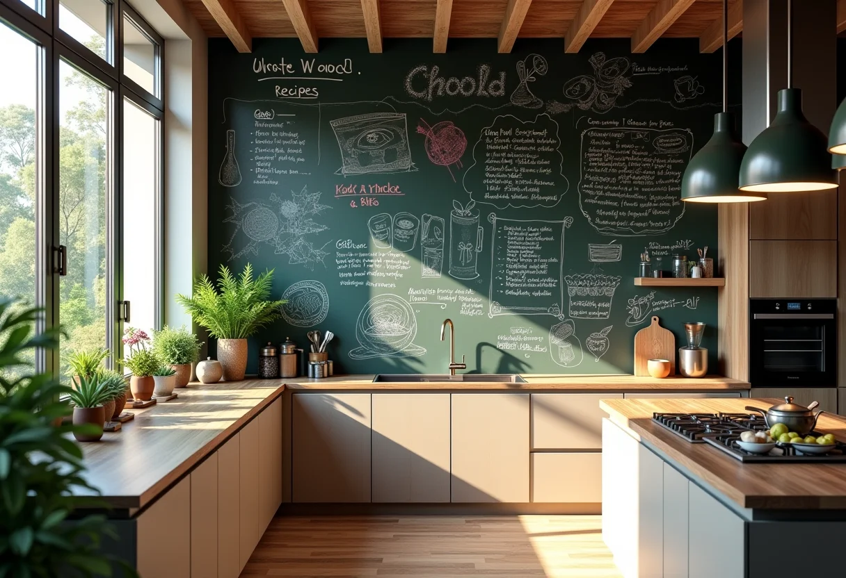 Transforme sua cozinha em um espaço prático e charmoso com uma parede lousa! Anote suas receitas favoritas, organize a lista de compras e deixe recados criativos para a família. Use giz colorido para destacar os ingredientes e tornar a organização mais divertida. Para um toque extra, adicione prateleiras com temperos e utensílios, criando um cantinho funcional e estiloso.