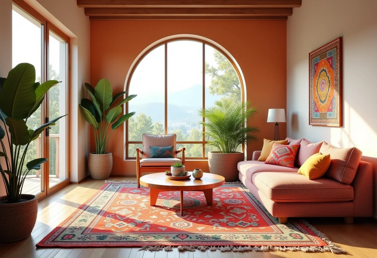 Paleta de cores harmoniosa em sala boho