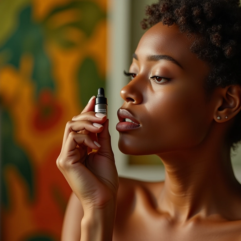 - Aplique o sérum: Coloque algumas gotas do sérum na palma da mão e espalhe suavemente sobre o rosto e o pescoço, massageando com movimentos circulares.