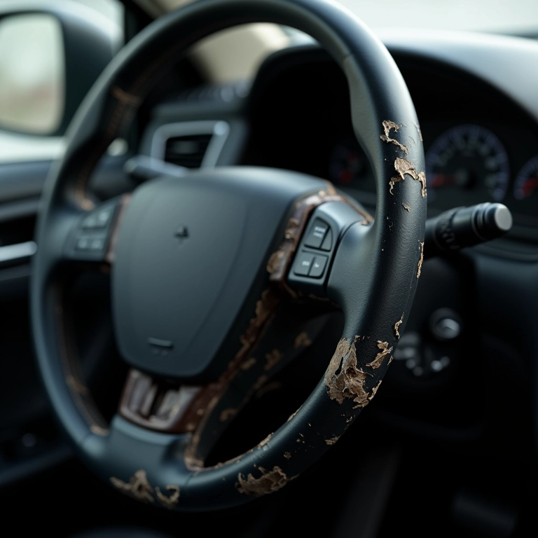 Imagina só: o sol forte batendo no painel do carro todos os dias! Essa exposição contínua ao calor faz com que o material do volante resseque e rache, levando ao descascamento. É como a nossa pele, que precisa de proteção solar, sabe?
